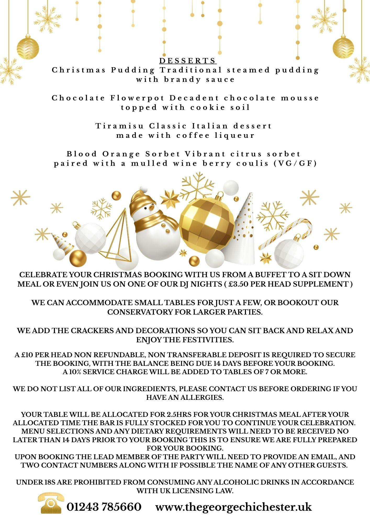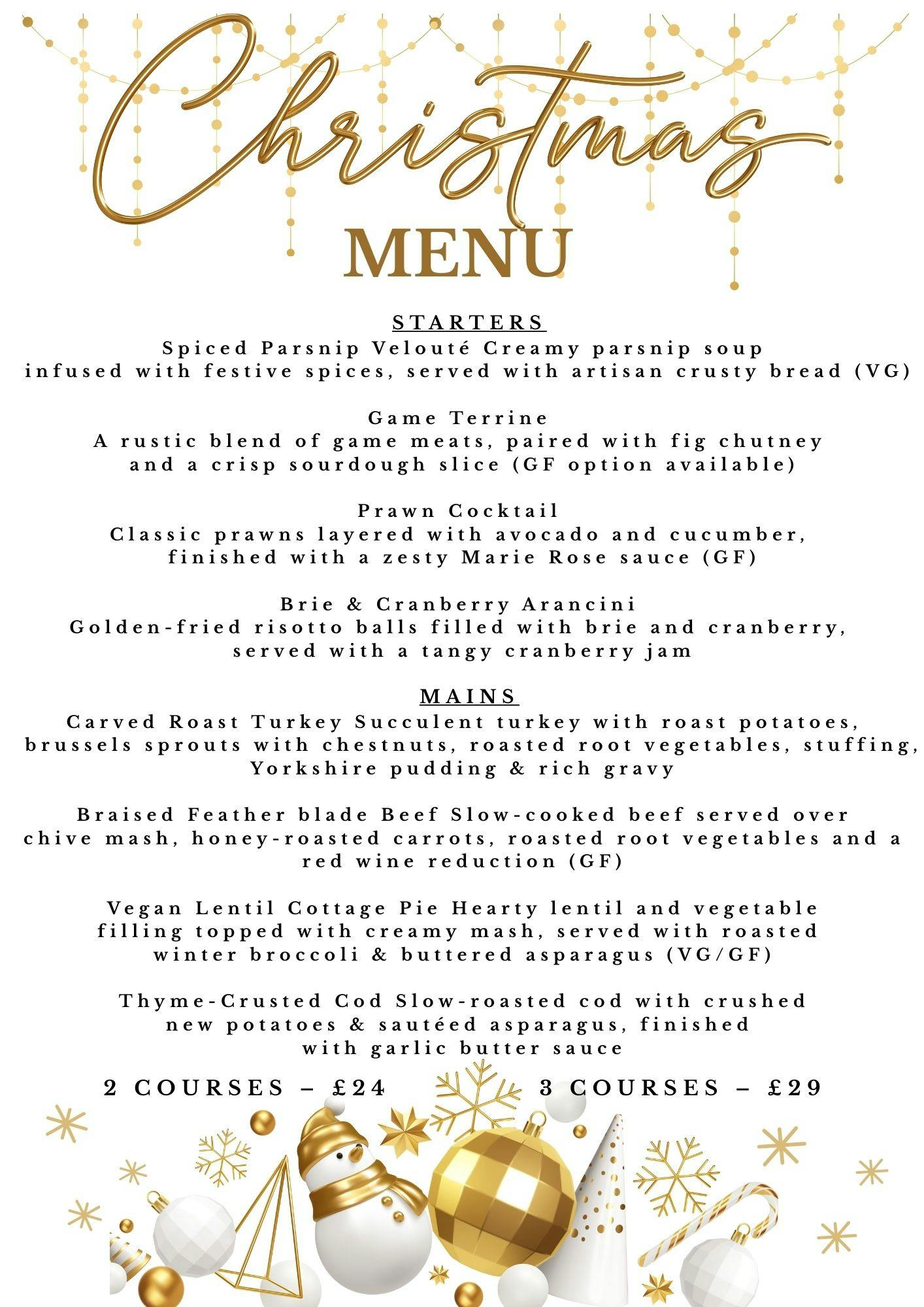Celebrate your Christmas booking with us from a buffet to a sit down meal or even join us on one of our DJ night ( £3.50 per head supplement )