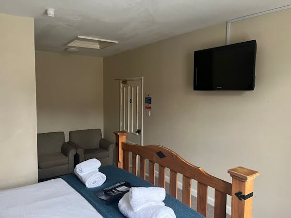 Large double room with en suite bathroom, tea and coffee making facilities and a television with Freeview channels.